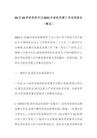 XX区XX学校党委书记2025年度抓党建工作述职报告(精品)