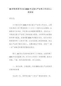 XX学校党委书记在2026年全面从严治党工作会议上的讲话2