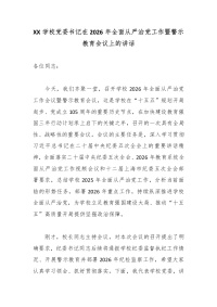 XX学校党委书记在2026年全面从严治党工作暨警示教育会议上的讲话2