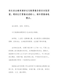 校长安全教育演讲过马路要像孙悟空东张西望。遇到红灯要像老虎耐心。骑车要像海龟慢点。