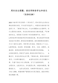 周末安全提醒:请老师转给学生和家长(2.15-2.16)