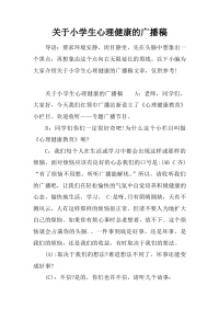 [范本]关于小学生心理健康的广播稿