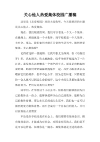 [范本]关心他人热爱集体校园广播稿