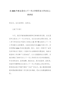 在2025年度全县关心下一代工作委员会工作会议上的讲话
