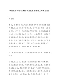 学院党委书记在2025年度民主生活会上的表态发言