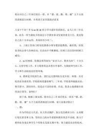 校长对自己三年来任校长一职,在“德、能、勤、绩、廉”五个方面的表现进行回顾,并希望大家多提批评意见