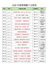 2026年春季升旗仪式安排表及主持词(1-19周):春启新程,步步生花