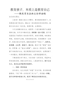 【秋季上】【期末】家长会班主任讲话稿:教育孩子,本质上是教育自己