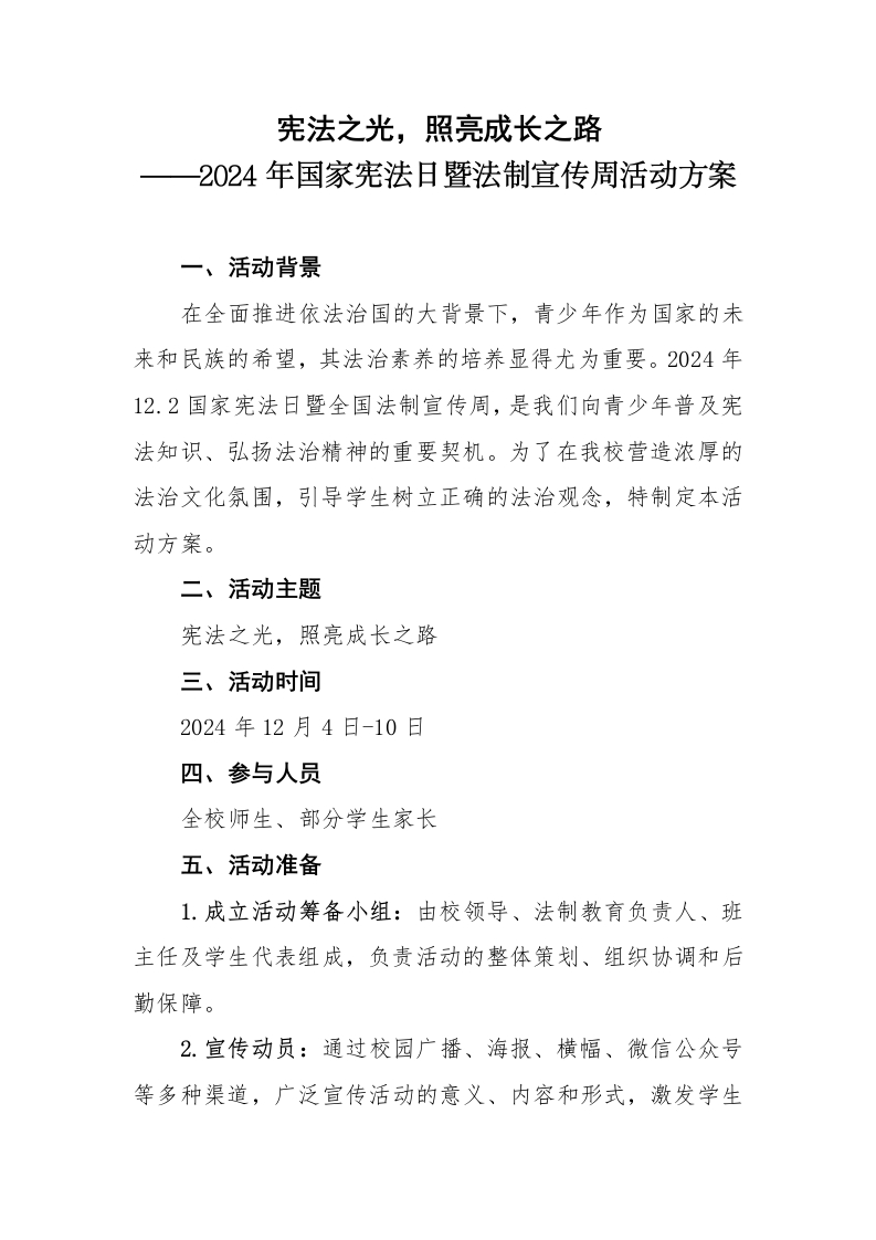 2024年国家宪法日暨法制宣传周活动方案