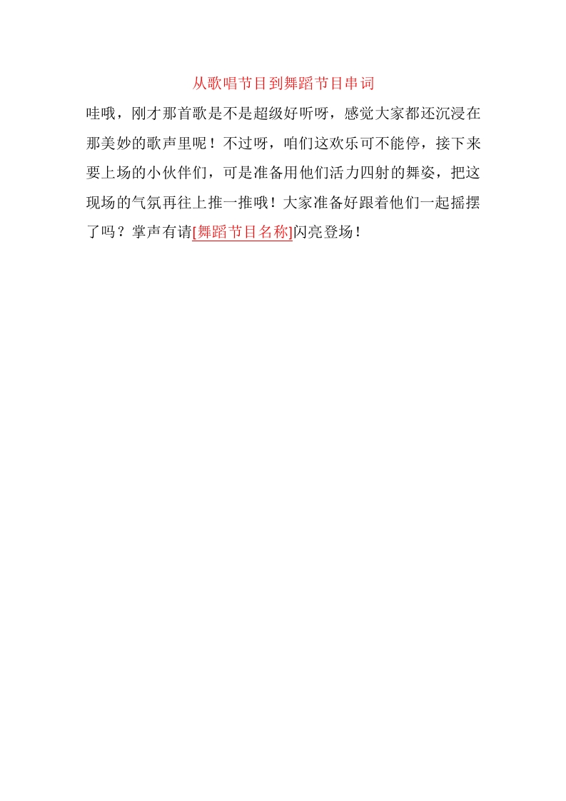 首页热门资源重要节日19、从歌唱节目到舞蹈节目串词