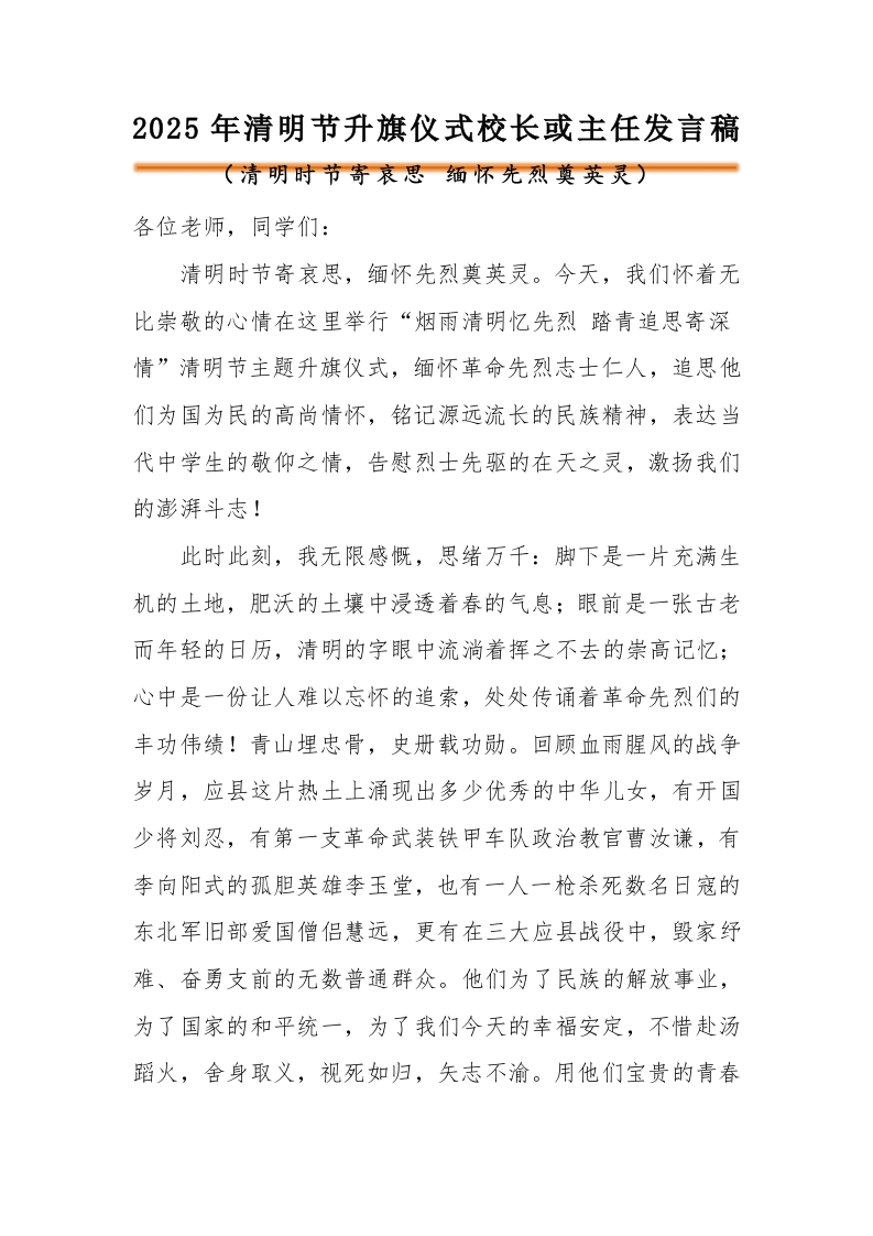 首页热门资源重要节日2025年清明节主题校长或德育主任发言稿