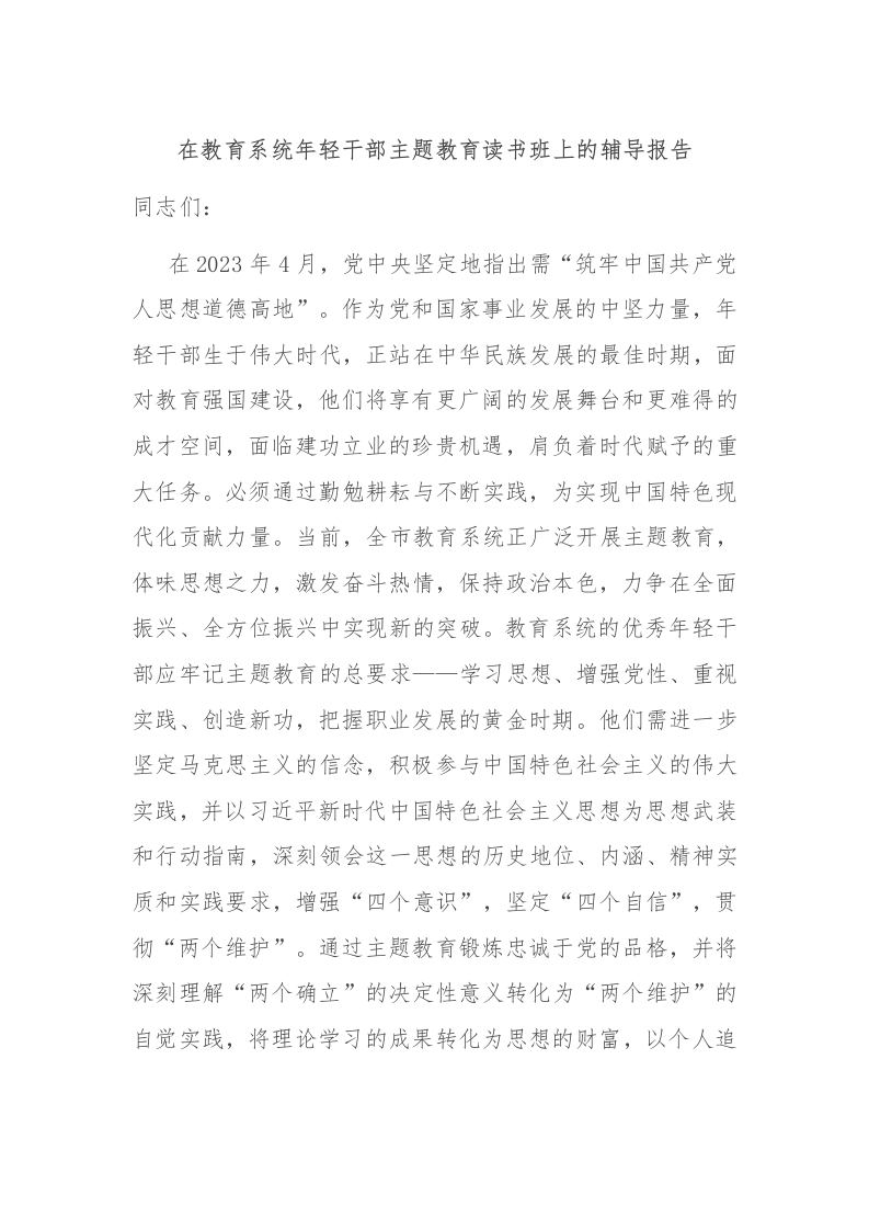 在教育系统年轻干部主题教育读书班上的辅导报告