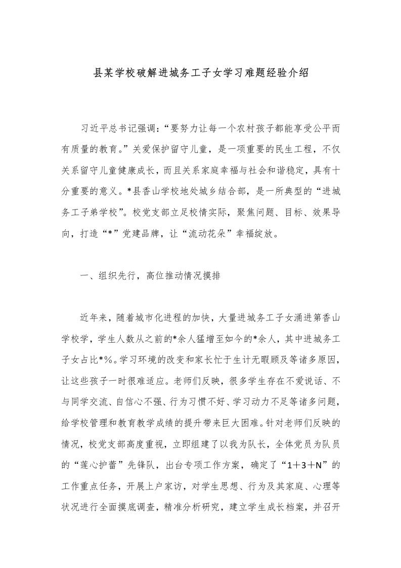 首页教师资料 经验汇报县某学校破解进城务工子女学习难题经验介绍