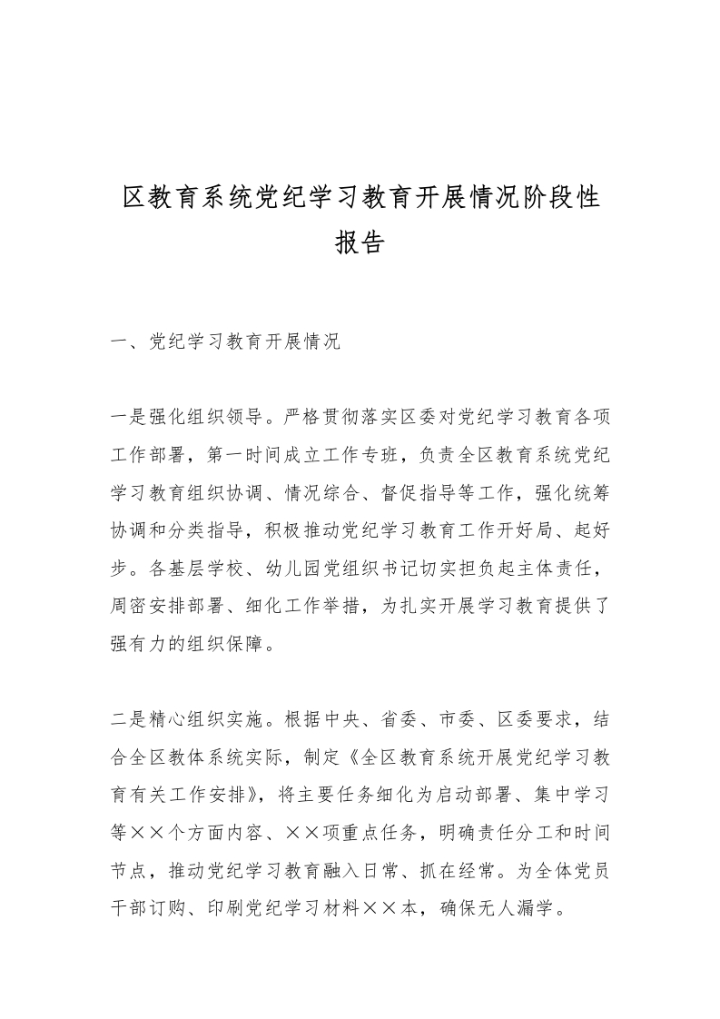 首页教师资料 经验汇报区教育系统党纪学习教育开展情况阶段性报告