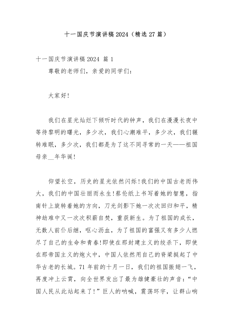 首页教师资料 经验汇报十一国庆节演讲稿2024(精选27篇)