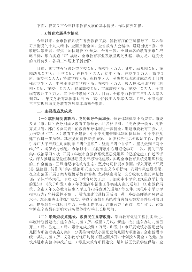 市教育改革发展情况工作汇报