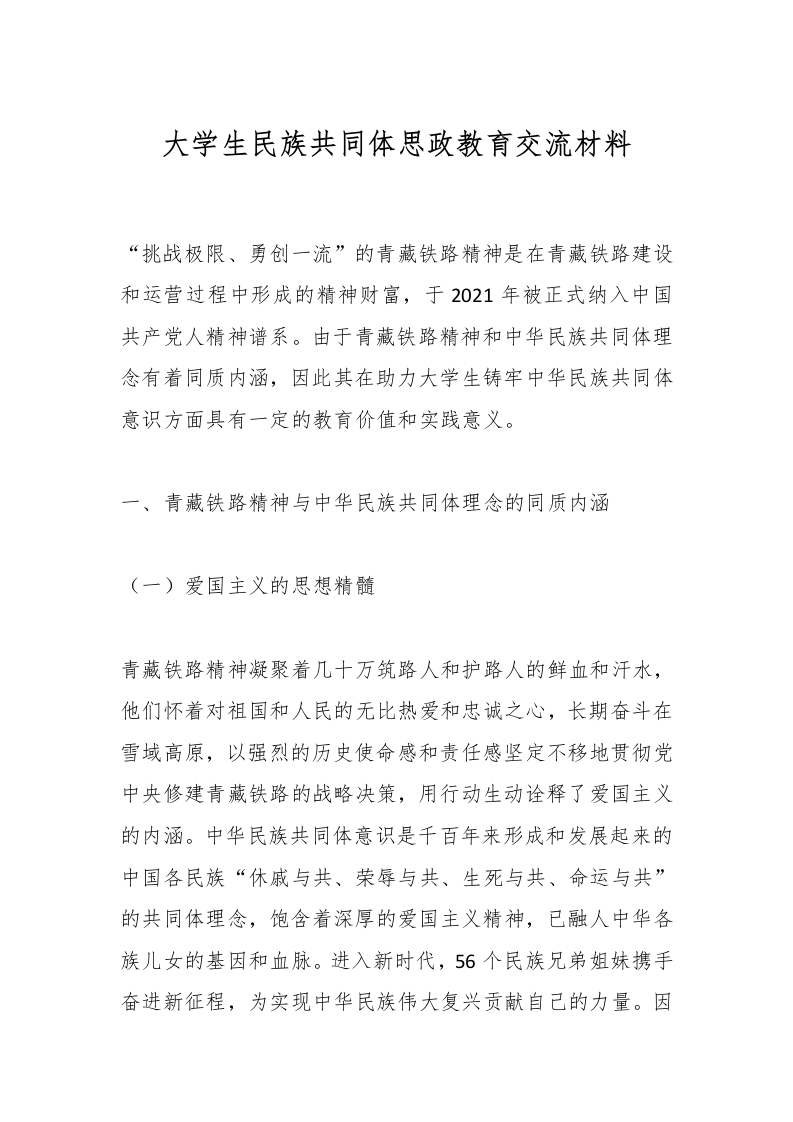 首页教师资料 经验汇报大学生民族共同体思政教育交流材料