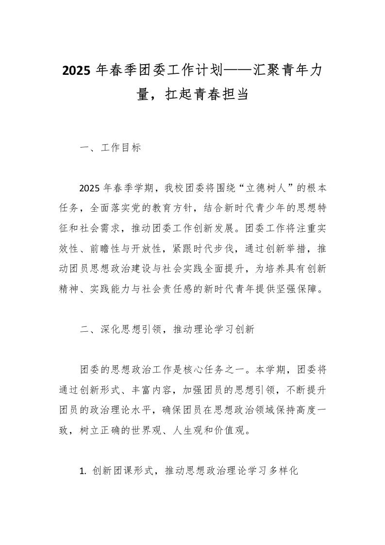 2025年春季团委工作计划——汇聚青年力量,扛起青春担当