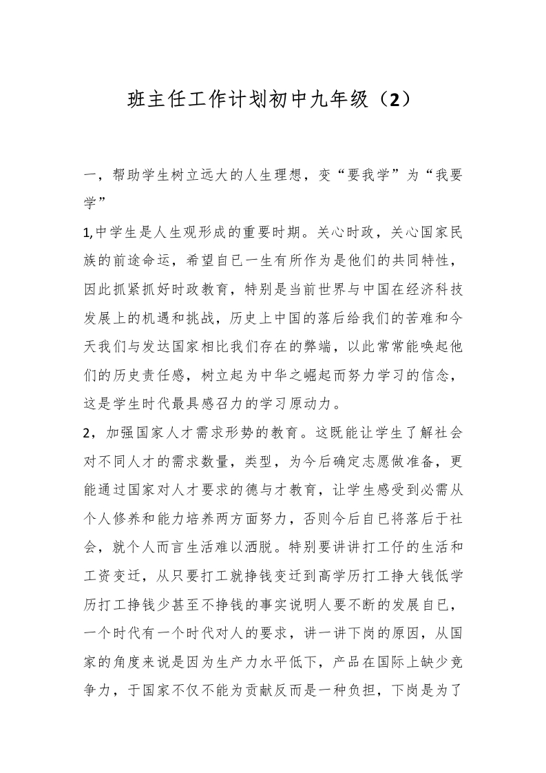 首页教师资料 计划总结班主任工作计划初中九年级(2)