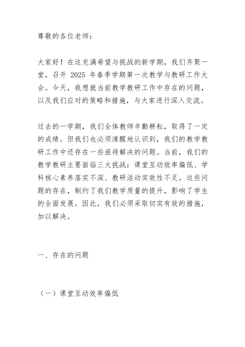 首页校长资料工作讲话“三大问题、五大举措、六大要求”!全面推动学校高质量发展!春季期第一次教学与教研工作大会,教学副校长讲话