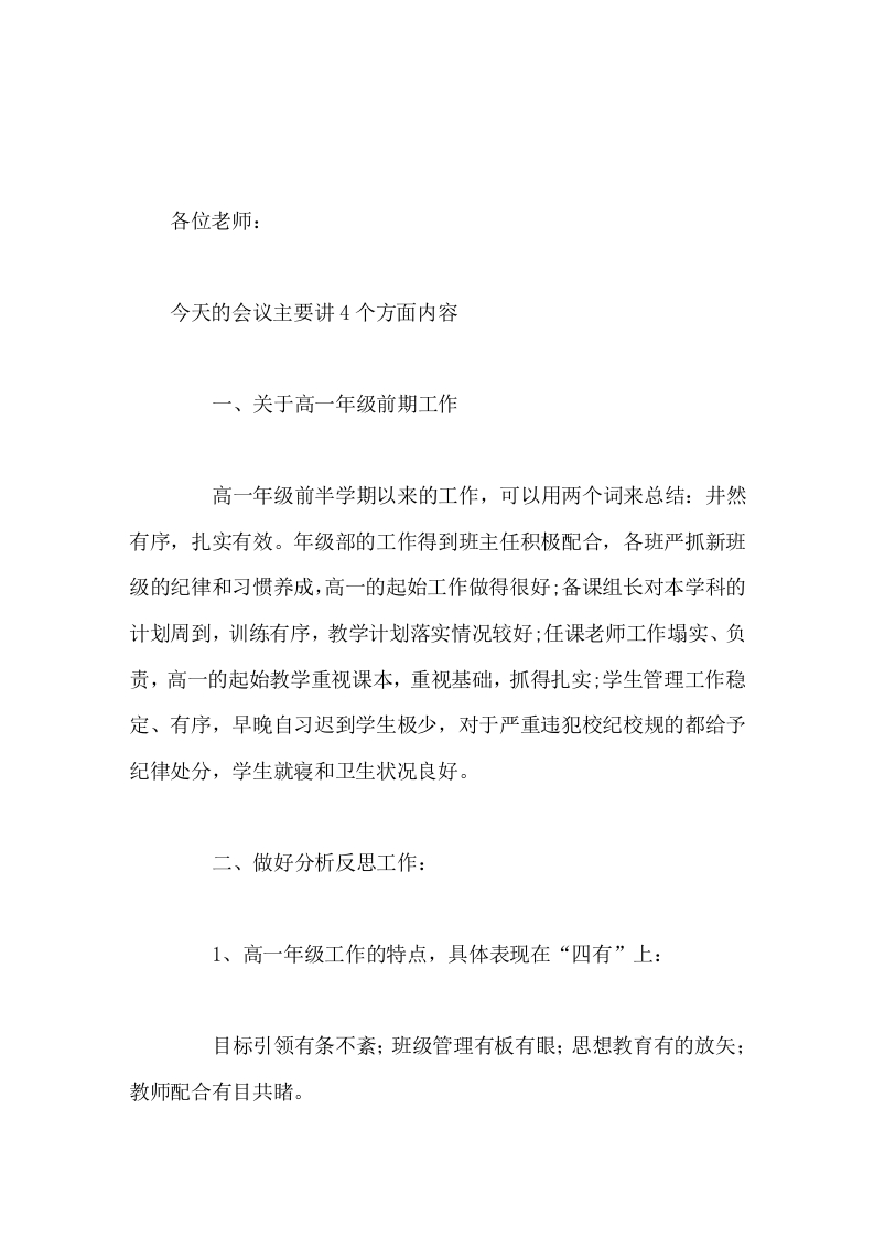 高一年级教师会议上,教学副校长讲话主要讲4个方面内容