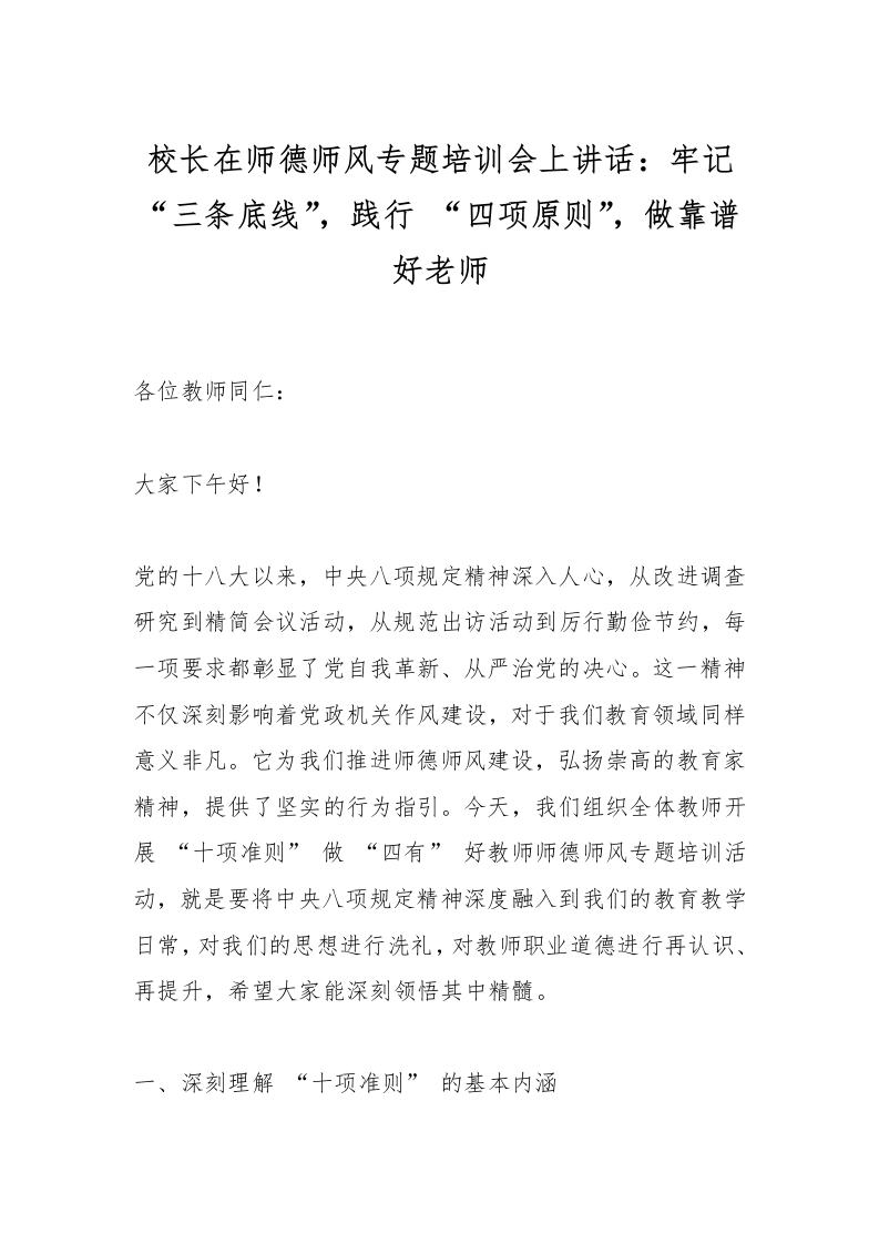 校长在师德师风专题培训会上讲话:牢记 “三条底线”,践行 “四项原则”,做靠谱好老师