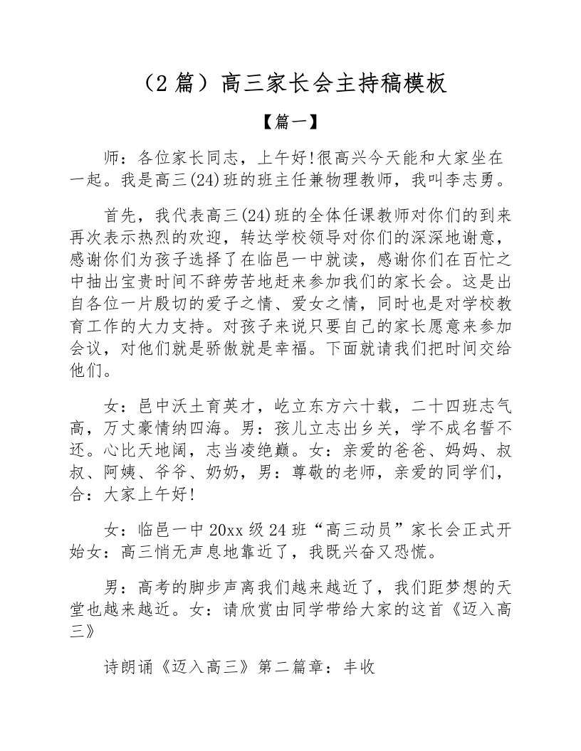 首页班主任库班会文档(2篇)高三家长会主持稿模板
