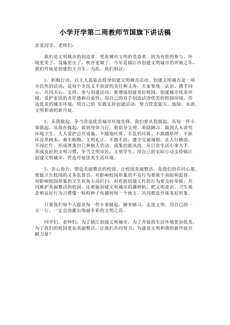 61.小学开学第二周教师节国旗下讲话稿