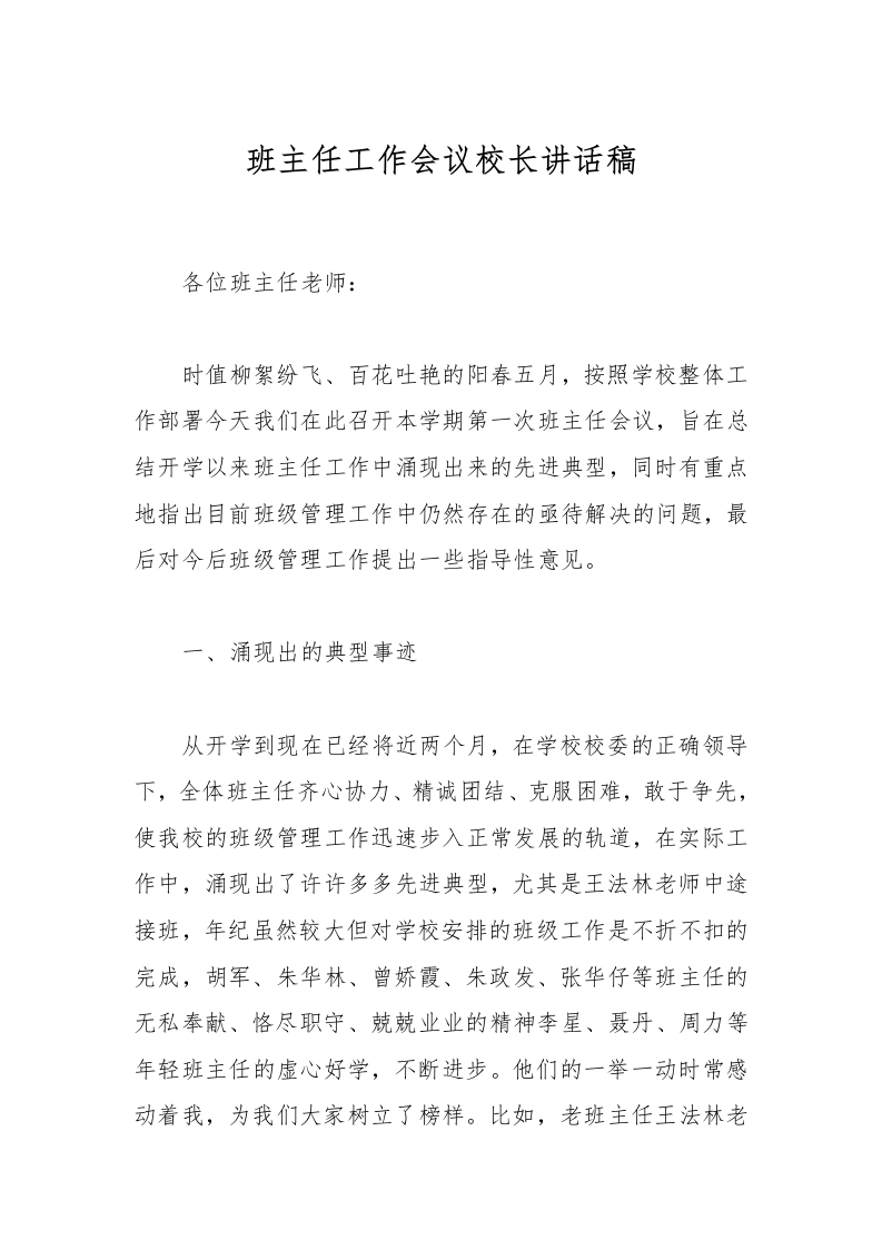 班主任工作会议校长讲话稿