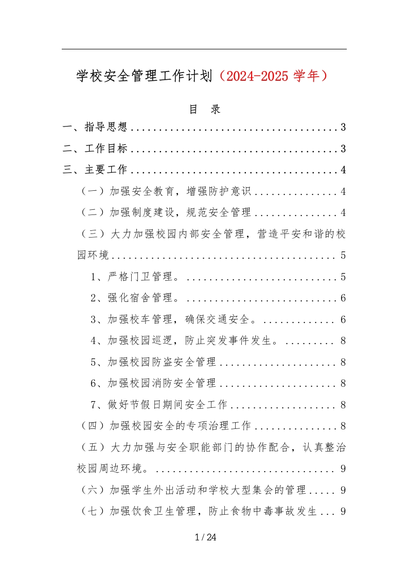 首页安全资料安全教育2-学校安全管理工作计划(2024-2025学年)