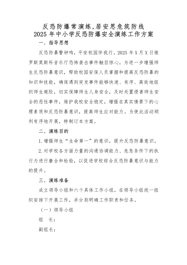 首页安全资料校园安全7.2025年中小学生反恐防暴安全演练活动方案