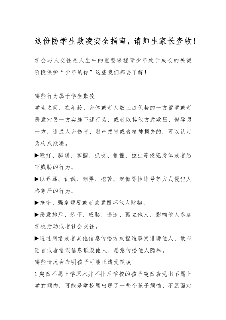这份防学生欺凌安全指南,请师生家长查收!