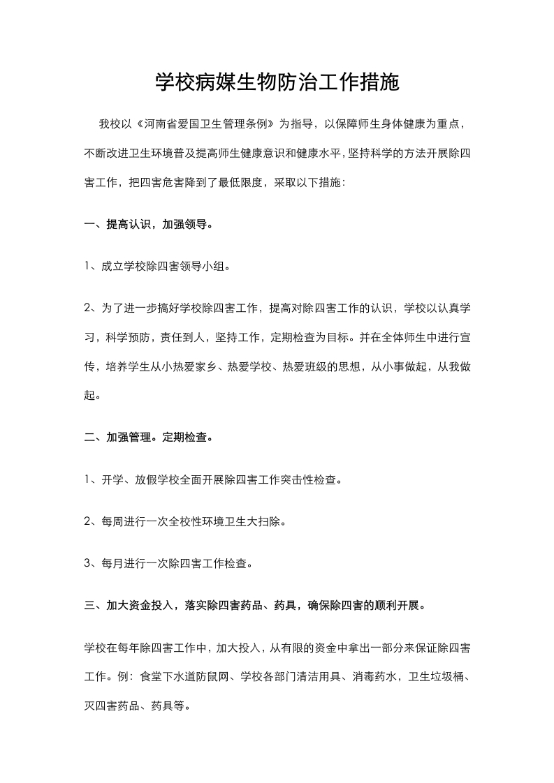 学校病媒生物防治工作措施