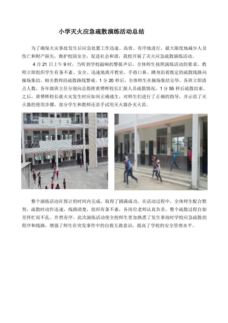小学灭火应急疏散演练活动总结