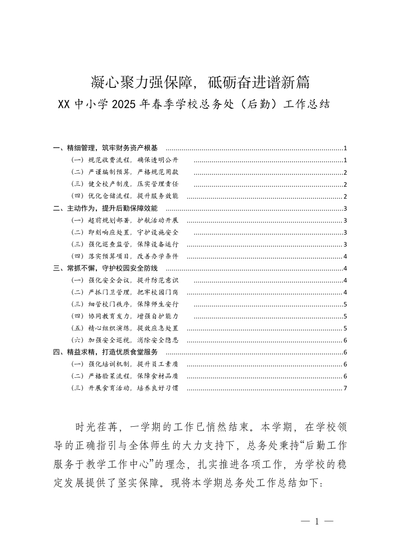 XX中小学2025年春季学校总务处(后勤)工作总结:凝心聚力强保障,砥砺奋进谱新篇