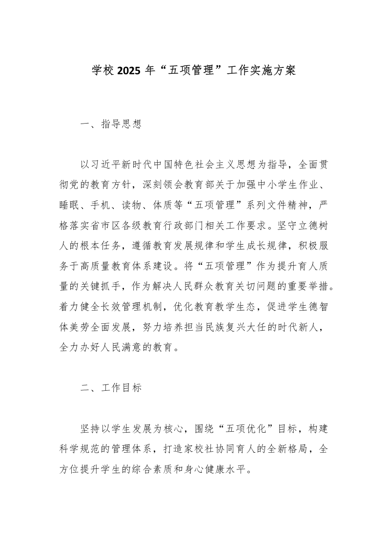 首页综合资料其它资料学校2025年“五项管理”工作实施方案