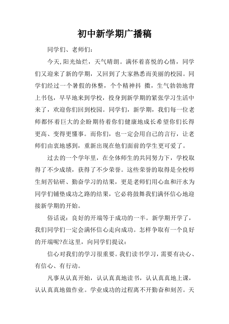 首页综合资料 校园广播[范本]初中新学期广播稿