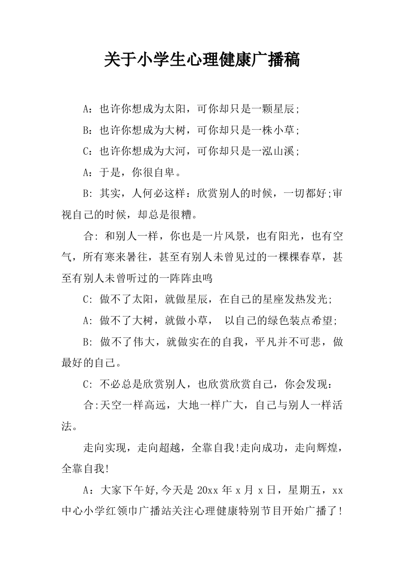首页综合资料 校园广播[范本]关于小学生心理健康广播稿