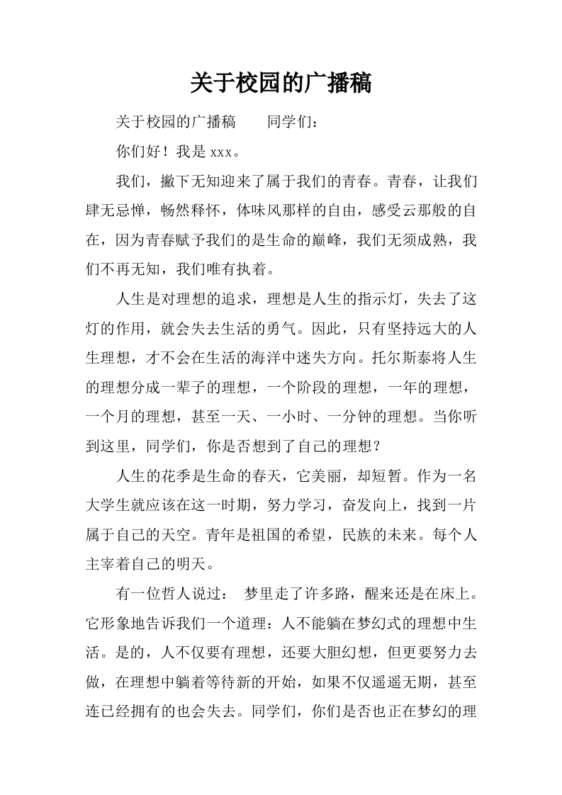 [范本]关于校园的广播稿
