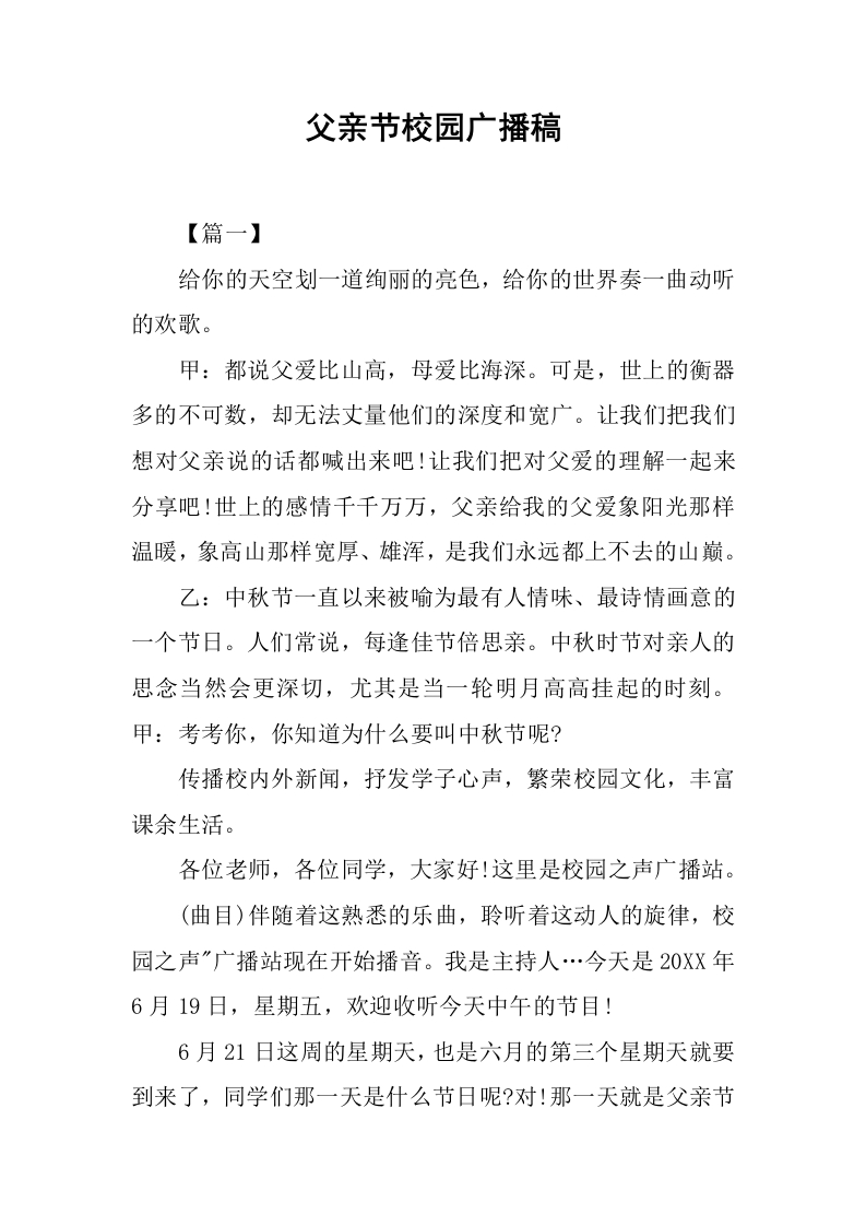 首页综合资料 校园广播[范本]父亲节校园广播稿