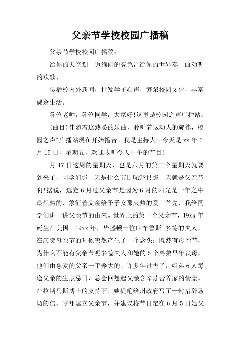 首页综合资料 校园广播[范本]父亲节学校校园广播稿