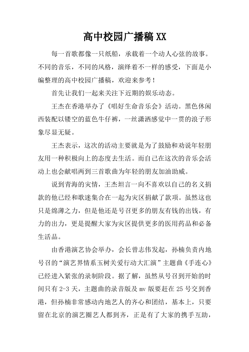 [范本]高中校园广播稿XX