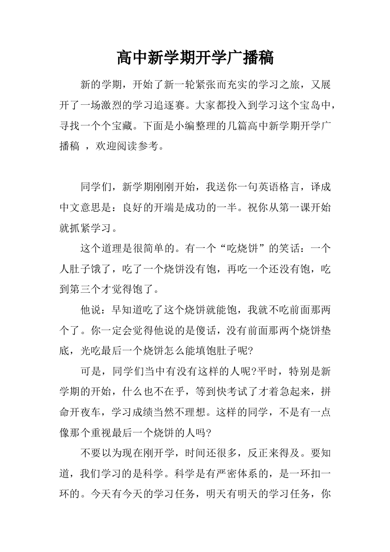 首页综合资料 校园广播[范本]高中新学期开学广播稿