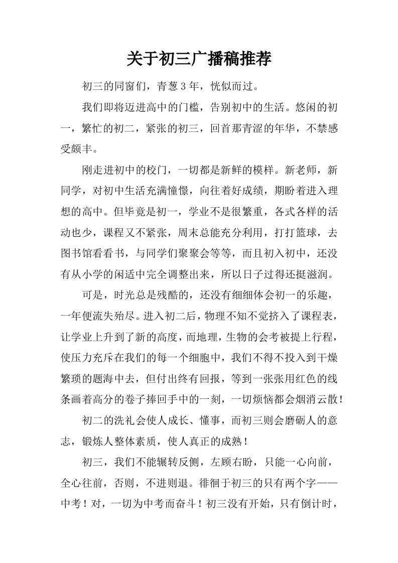 [范本]关于初三广播稿推荐