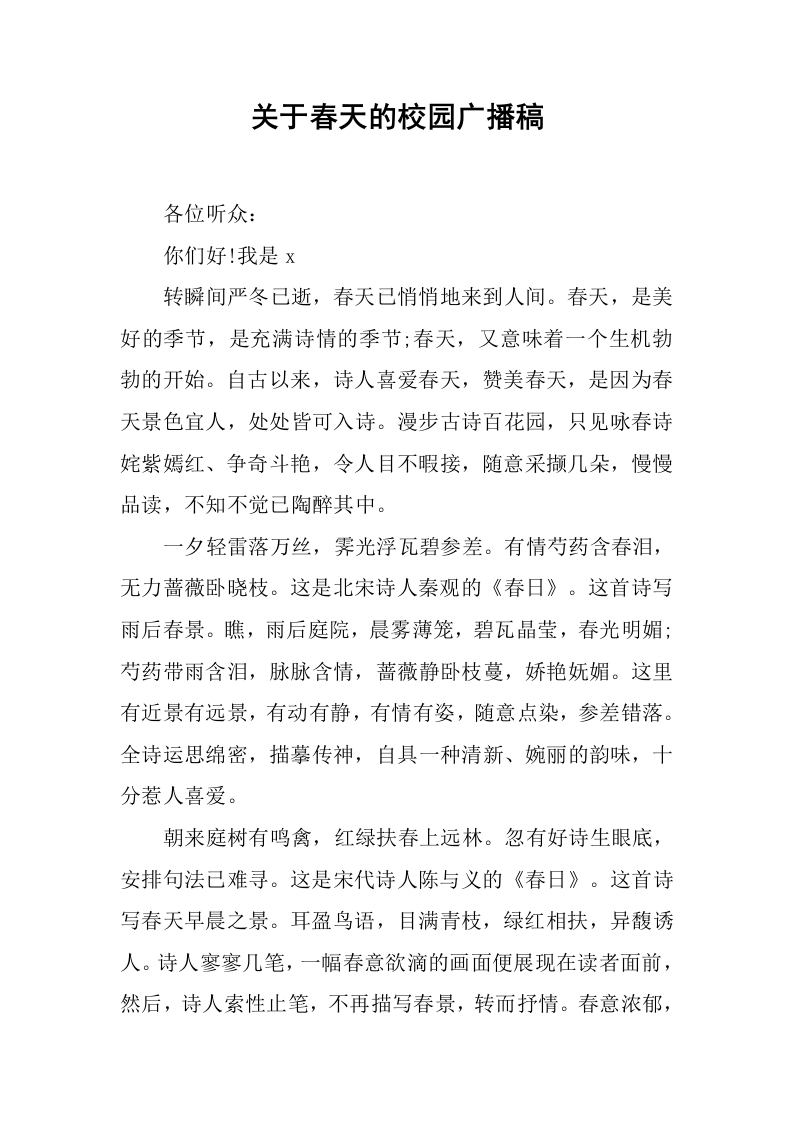 [范本]关于春天的校园广播稿