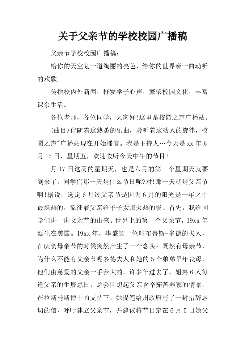 首页综合资料 校园广播[范本]关于父亲节的学校校园广播稿