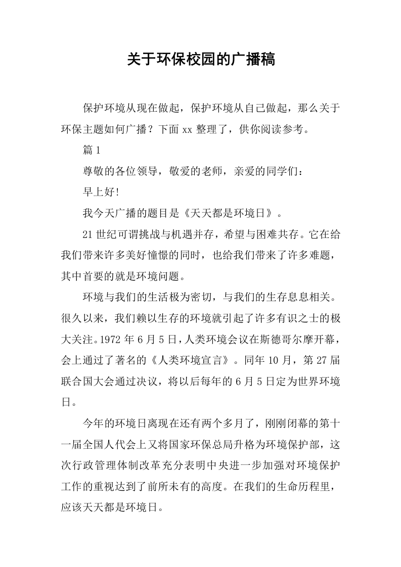 首页综合资料 校园广播[范本]关于环保校园的广播稿