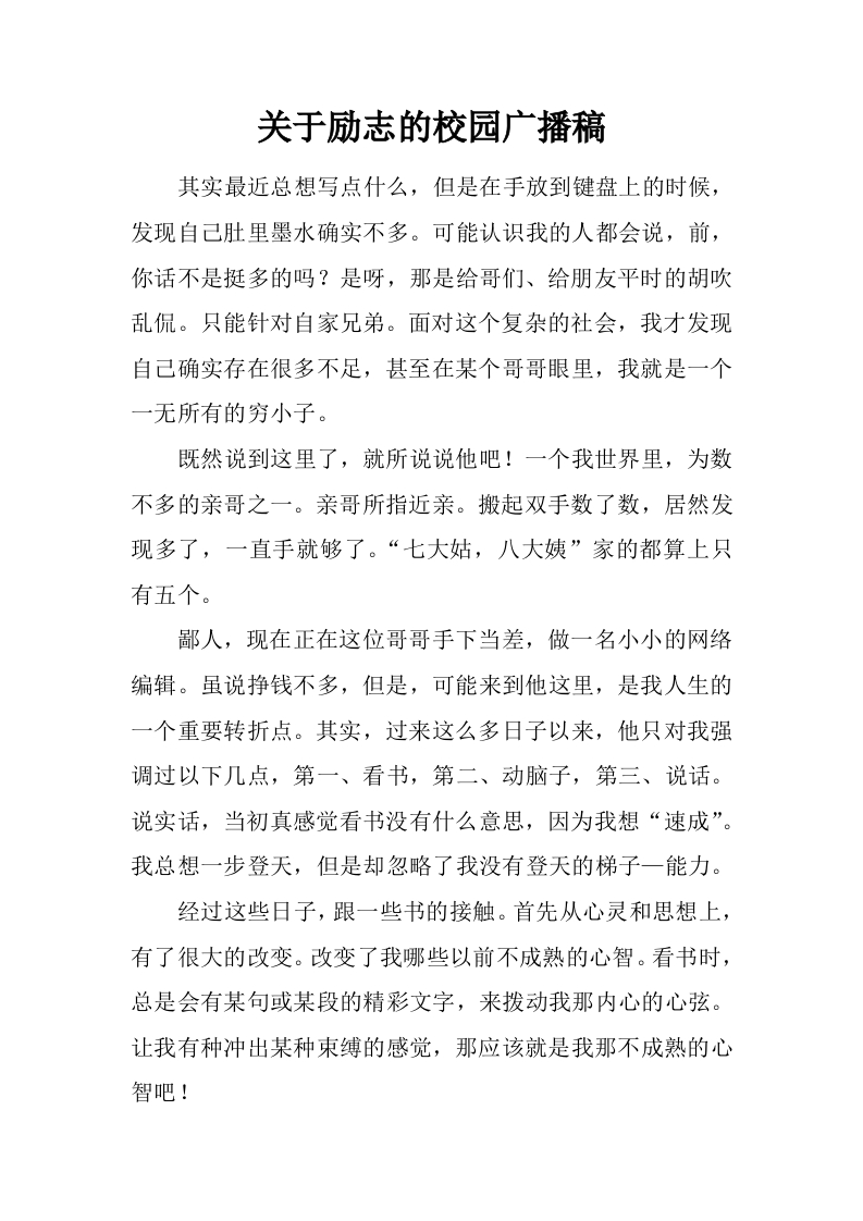 首页综合资料 校园广播[范本]关于励志的校园广播稿