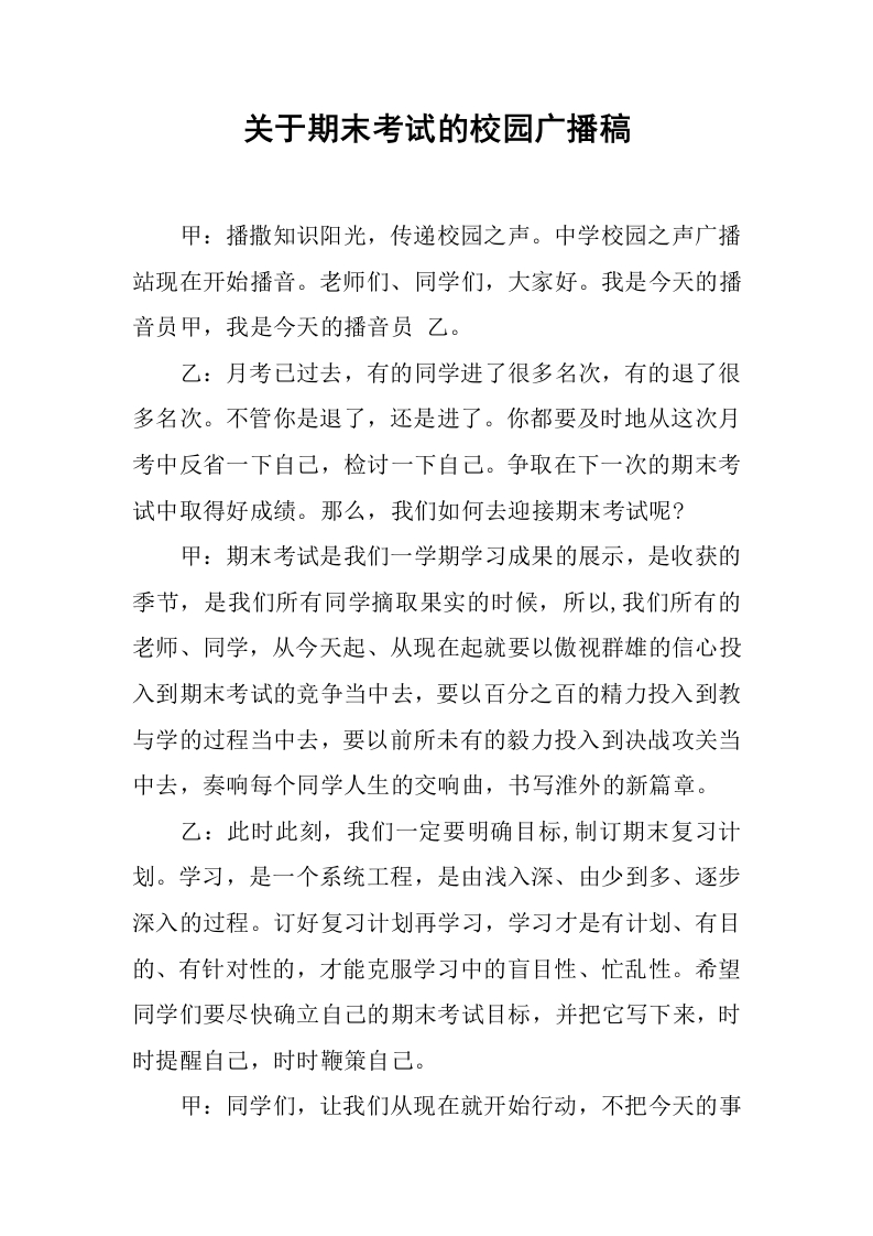 [范本]关于期末考试的校园广播稿