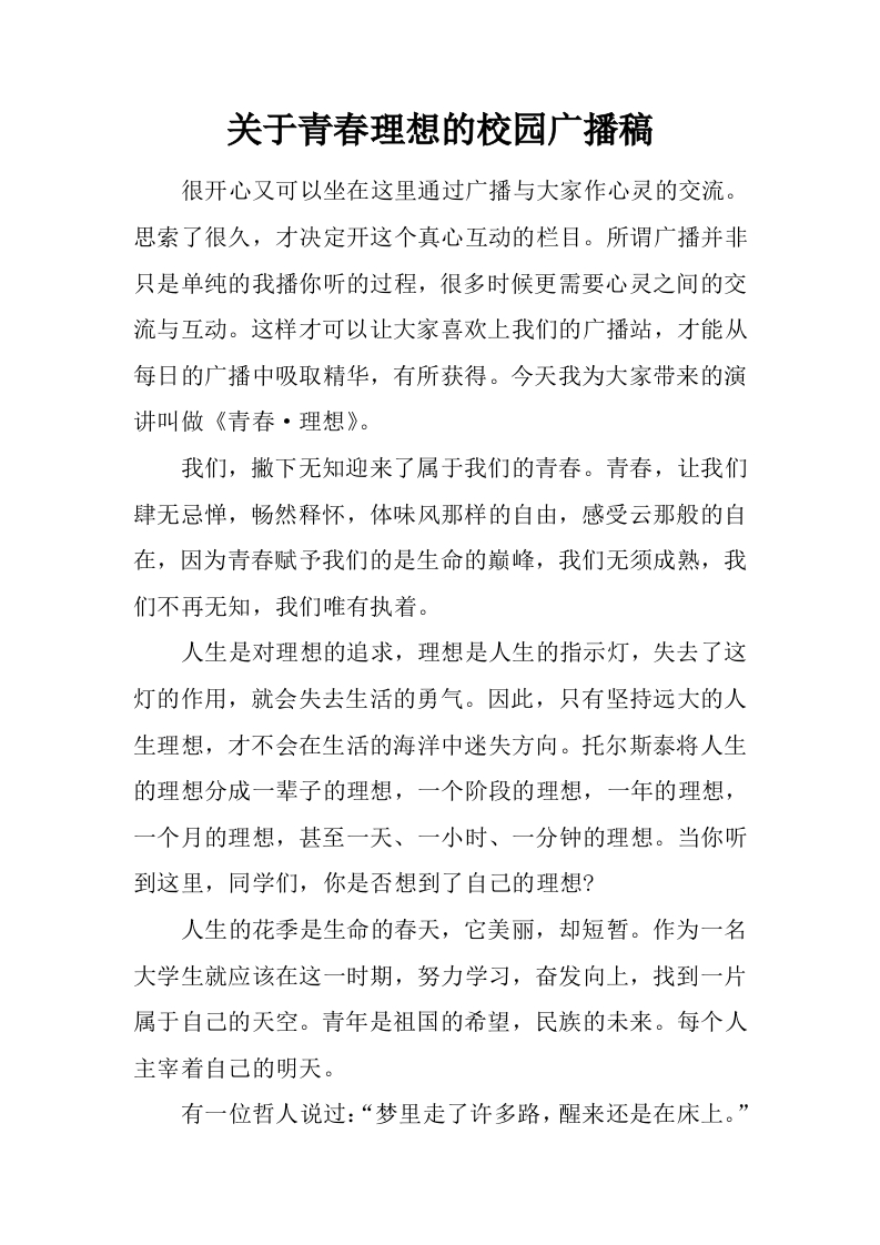 首页综合资料 校园广播[范本]关于青春理想的校园广播稿